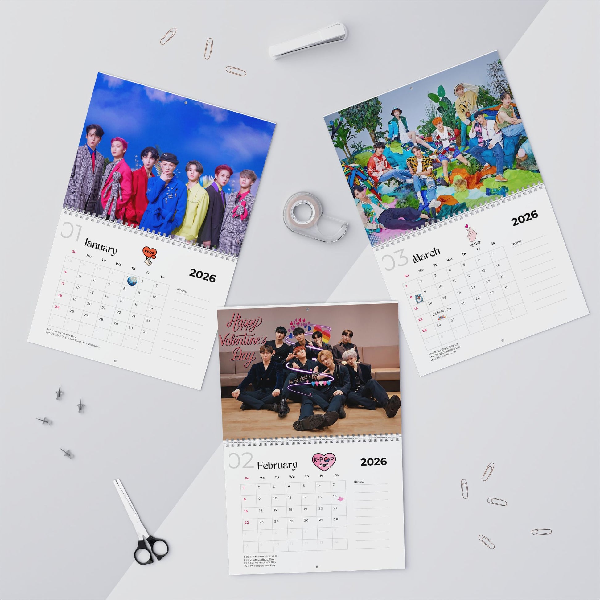Each month features your favorite idol's birthday, vibrant, eye-catching imagery that brightens your space and keeps you motivated.